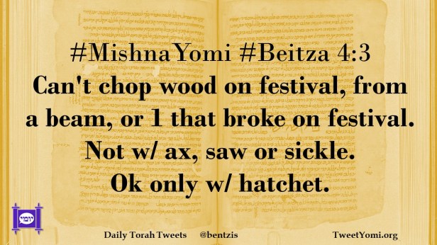 #MishnaYomi #Beitza 4:3 Can’t chop wood on festival, from a beam, or 1 that broke on festival. Not w/ ax, saw or sickle. Ok only w/ hatchet.