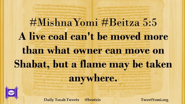 MishnaYomi #Beitza 5:5 A live coal can’t be moved more than what owner can move on Shabat, but a flame may be taken anywhere.