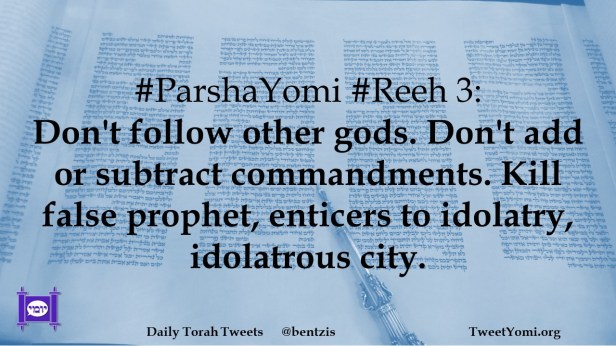 #ParshaYomi #Reeh 3: Don’t follow other gods. Don’t add or subtract commandments. Kill false prophet, enticers to idolatry, idolatrous city.