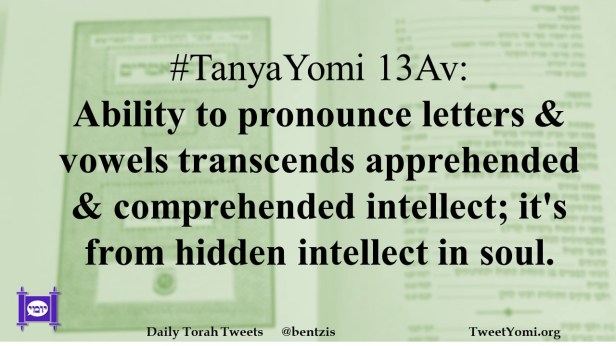 #TanyaYomi 13Av: Ability to pronounce letters & vowels transcends apprehended & comprehended intellect; it’s from hidden intellect in soul.