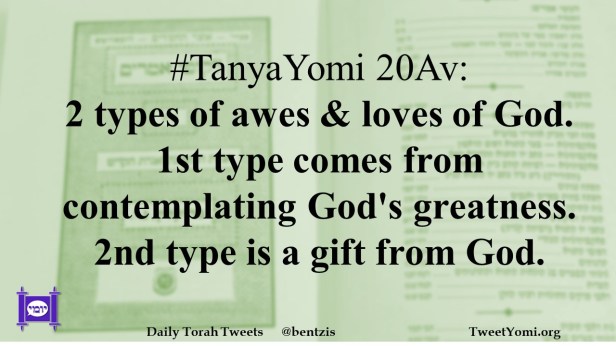 #TanyaYomi 20Av: 2 types of awes & loves of God. 1st type comes from contemplating God’s greatness. 2nd type is a gift from God.