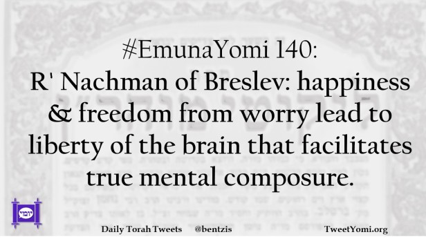 #EmunaYomi 140: R’ Nachman of Breslev: happiness & freedom from worry lead to liberty of the brain that facilitates true mental composure.
