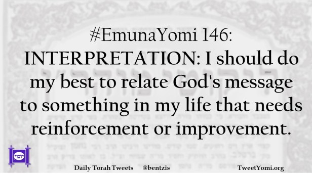 #EmunaYomi 146: INTERPRETATION: I should do my best to relate God’s message to something in my life that needs reinforcement or improvement.