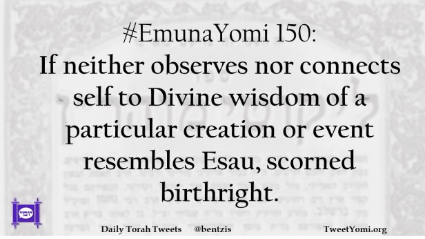 #EmunaYomi 150: If neither observes nor connects self to Divine wisdom of a particular creation or event resembles Esau, scorned birthright.