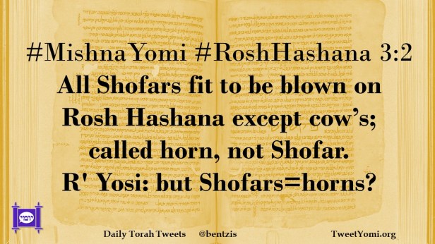 #MishnaYomi #RoshHashana 3:2 All Shofars fit to be blown on Rosh Hashana except cow’s; called horn, not Shofar. R’ Yosi: but Shofars=horns?