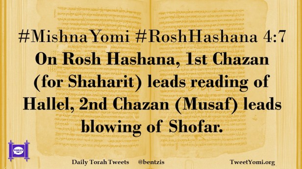 #MishnaYomi #RoshHashana 4:7 On Rosh Hashana, 1st Chazan (for Shaharit) leads reading of Hallel, 2nd Chazan (Musaf) leads blowing of Shofar.