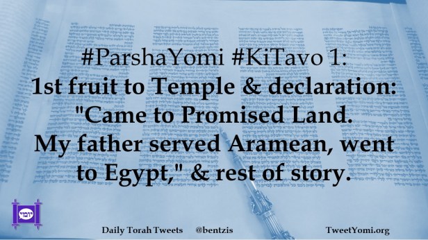 #ParshaYomi #KiTavo 1: 1st fruit to Temple & declaration: “Came to Promised Land. My father served Aramean, went to Egypt,” & rest of story.