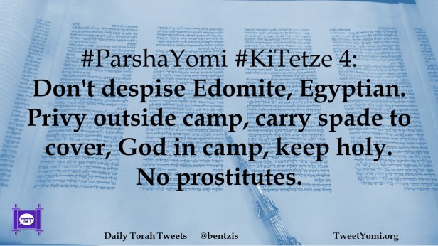 #ParshaYomi #KiTetze 4: Don’t despise Edomite, Egyptian. Privy outside camp, carry spade to cover, God in camp, keep holy. No prostitutes.