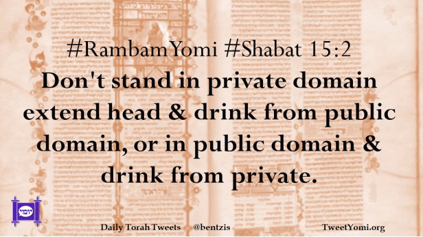#RambamYomi #Shabat 15:2 Don’t stand in private domain extend head & drink from public domain, or in public domain & drink from private.