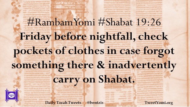 #RambamYomi #Shabat 19:26 Friday before nightfall, check pockets of clothes in case forgot something there & inadvertently carry on Shabat.