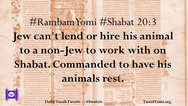 #RambamYomi #Shabat 20:3 Jew can’t lend or hire his animal to a non-Jew to work with on Shabat. Commanded to have his animals rest.