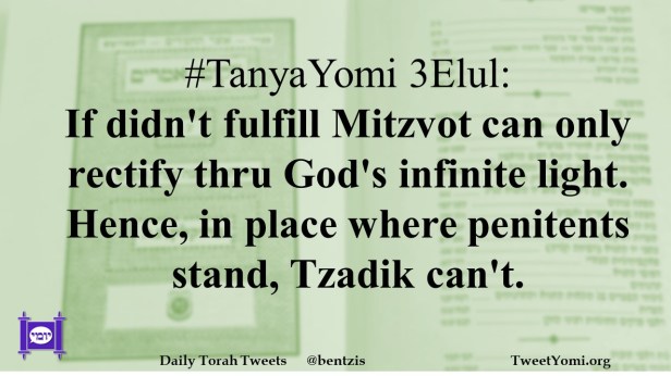 #TanyaYomi 3Elul: If didn’t fulfill Mitzvot can only rectify thru God’s infinite light. Hence, in place where penitents stand, Tzadik can’t.