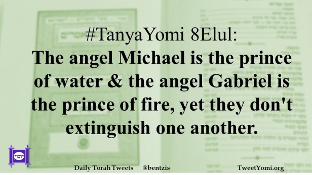 #TanyaYomi 8Elul: The angel Michael is the prince of water & the angel Gabriel is the prince of fire, yet they don’t extinguish one another.