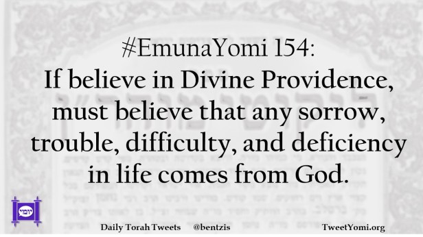 #EmunaYomi 154: If believe in Divine Providence, must believe that any sorrow, trouble, difficulty, and deficiency in life comes from God.