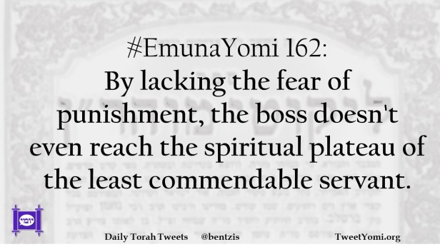 #EmunaYomi 162: By lacking the fear of punishment, the boss doesn’t even reach the spiritual plateau of the least commendable servant.