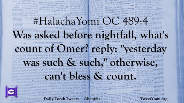 #HalachaYomi OC 489:4 Was asked before nightfall, what’s count of Omer? reply: “yesterday was such & such,” otherwise, can’t bless & count.