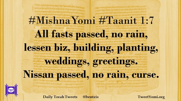 #MishnaYomi #Taanit 1:7 All fasts passed, no rain, lessen biz, building, planting, weddings, greetings. Nissan passed, no rain, curse.