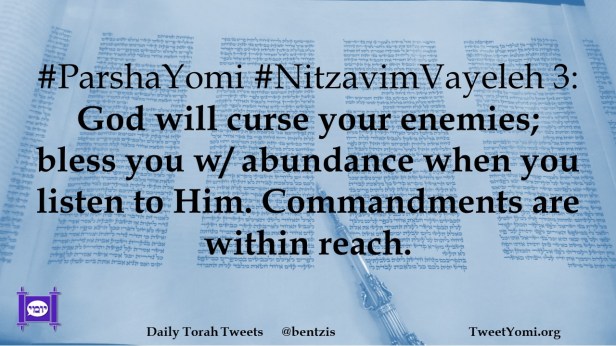 #ParshaYomi #NitzavimVayeleh 3: God will curse your enemies; bless you w/ abundance when you listen to Him. Commandments are within reach.
