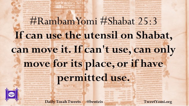 #RambamYomi #Shabat 25:3 If can use the utensil on Shabat, can move it. If can’t use, can only move for its place, or if have permitted use.