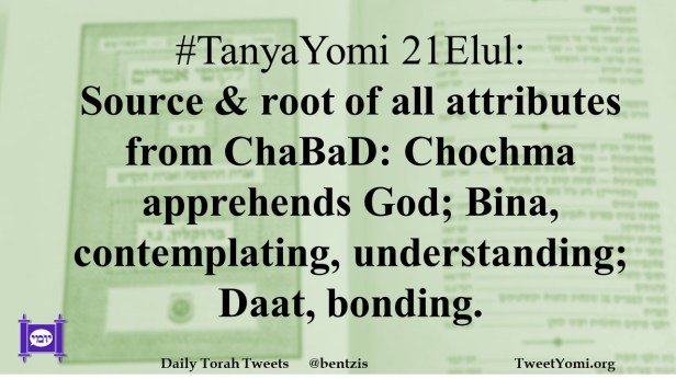 #TanyaYomi 21Elul: Source & root of all attributes from ChaBaD: Chochma apprehends God; Bina, contemplating, understanding; Daat, bonding.