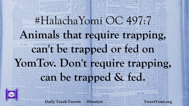#HalachaYomi OC 497:7 Animals that require trapping, can’t be trapped or fed on YomTov. Don’t require trapping, can be trapped & fed.