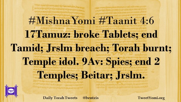 #MishnaYomi #Taanit 4:6 17Tamuz: broke Tablets; end Tamid; Jrslm breach; Torah burnt; Temple idol. 9Av: Spies; end 2 Temples; Beitar; Jrslm.