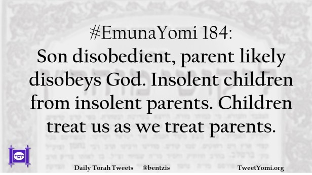 #EmunaYomi 184: Son disobedient, parent likely disobeys God. Insolent children from insolent parents. Children treat us as we treat parents.