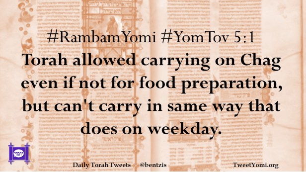 #RambamYomi #YomTov 5:1 Torah allowed carrying on Chag even if not for food preparation, but can’t carry in same way that does on weekday.