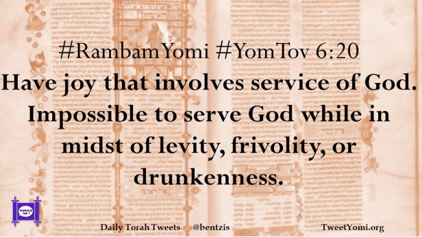 #RambamYomi #YomTov 6:20 Have joy that involves service of God. Impossible to serve God while in midst of levity, frivolity, or drunkenness.