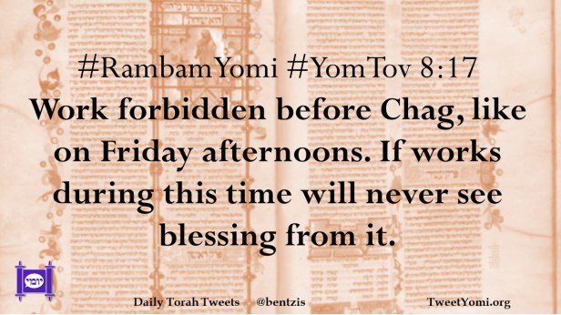 #RambamYomi #YomTov 8:17 Work forbidden before Chag, like on Friday afternoons. If works during this time will never see blessing from it.