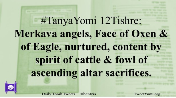 #TanyaYomi 12Tishre: Merkava angels, Face of Oxen & of Eagle, nurtured, content by spirit of cattle & fowl of ascending altar sacrifices.