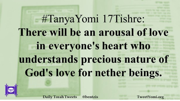 #TanyaYomi 17Tishre: There will be an arousal of love in everyone’s heart who understands precious nature of God’s love for nether beings.