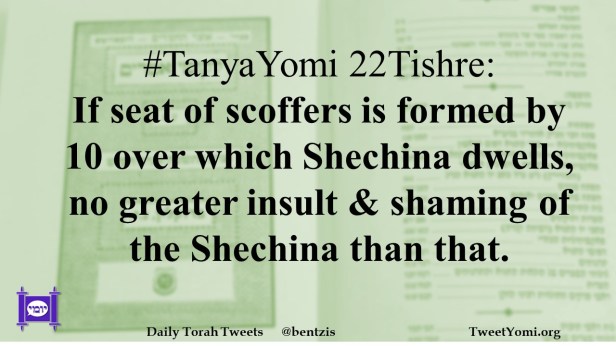 #TanyaYomi 22Tishre: If seat of scoffers is formed by 10 over which Shechina dwells, no greater insult & shaming of the Shechina than that.
