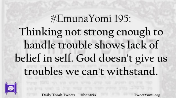 #EmunaYomi 195: Thinking not strong enough to handle trouble shows lack of belief in self. God doesn’t give us troubles we can’t withstand.