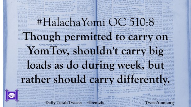 #HalachaYomi OC 510:8 Though permitted to carry on YomTov, shouldn’t carry big loads as do during week, but rather should carry differently.