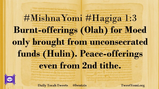 #MishnaYomi #Hagiga 1:3 Burnt-offerings (Olah) for Moed only brought from unconsecrated funds (Hulin). Peace-offerings even from 2nd tithe.