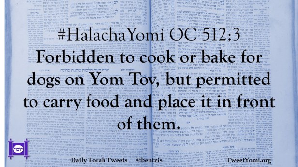 #HalachaYomi OC 512:3 Forbidden to cook or bake for dogs on Yom Tov, but permitted to carry food and place it in front of them.