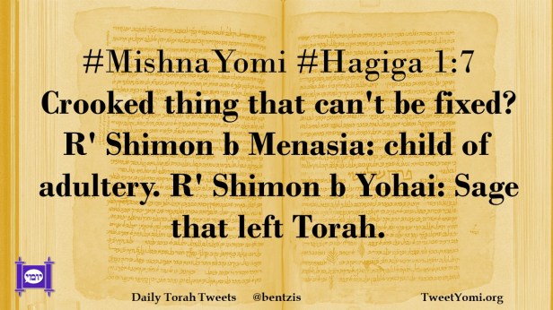 #MishnaYomi #Hagiga 1:7 Crooked thing that can’t be fixed? R’ Shimon b Menasia: child of adultery. R’ Shimon b Yohai: Sage that left Torah.