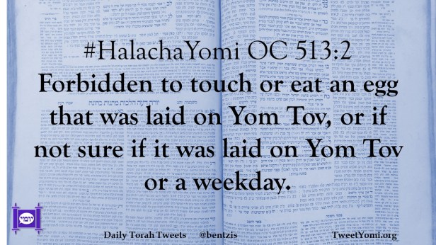 #HalachaYomi OC 513:2 Forbidden to touch or eat an egg that was laid on Yom Tov, or if not sure if it was laid on Yom Tov or a weekday.