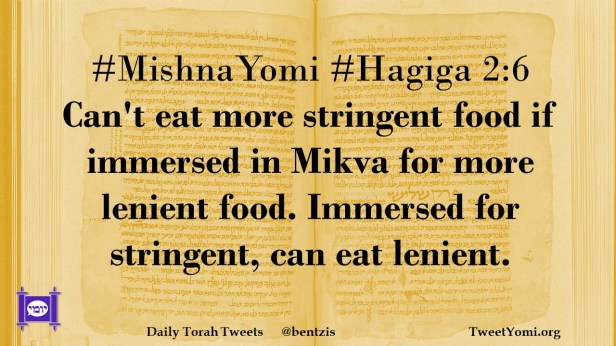 #MishnaYomi #Hagiga 2:6 Can’t eat more stringent food if immersed in Mikva for more lenient food. Immersed for stringent, can eat lenient.