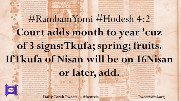 #RambamYomi #Hodesh 4:2 Court adds month to year ‘cuz of 3 signs: Tkufa; spring; fruits. If Tkufa of Nisan will be on 16Nisan or later, add.