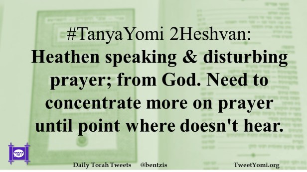 #TanyaYomi 2Heshvan: Heathen speaking & disturbing prayer; from God. Need to concentrate more on prayer until point where doesn’t hear.