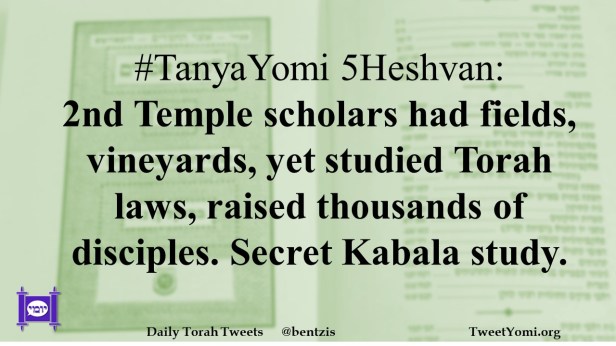 #TanyaYomi 5Heshvan: 2nd Temple scholars had fields, vineyards, yet studied Torah laws, raised thousands of disciples. Secret Kabala study.