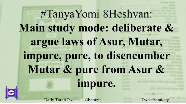 #TanyaYomi 8Heshvan: Main study mode: deliberate & argue laws of Asur, Mutar, impure, pure, to disencumber Mutar & pure from Asur & impure.
