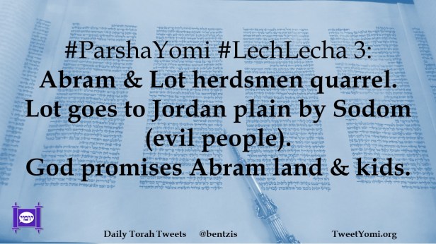 #ParshaYomi #LechLecha 3: Abram & Lot herdsmen quarrel. Lot goes to Jordan plain by Sodom (evil people). God promises Abram land & kids.