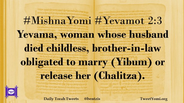 #MishnaYomi #Yevamot 2:3 Yevama, woman whose husband died childless, brother-in-law obligated to marry (Yibum) or release her (Chalitza).