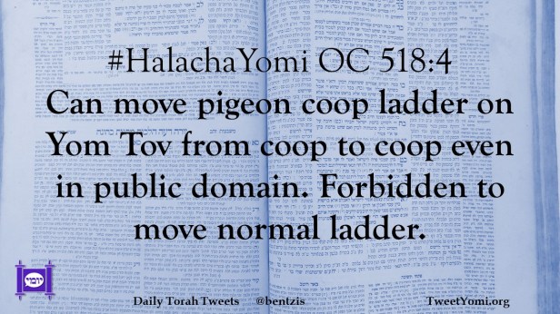 #HalachaYomi OC 518:4 Can move pigeon coop ladder on Yom Tov from coop to coop even in public domain. Forbidden to move normal ladder.