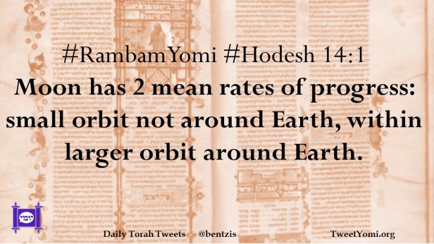Hodesh, RambamYomi #RambamYomi #Hodesh 14:1 Date: November 5, 2023Author: netanelspitz #RambamYomi #Hodesh 14:1 Moon has 2 mean rates of progress: small orbit not around Earth, within larger orbit around Earth. Share this: Share on X (Opens in new window) X Share on Facebook (Opens in new window) Facebook Like Loading... Related