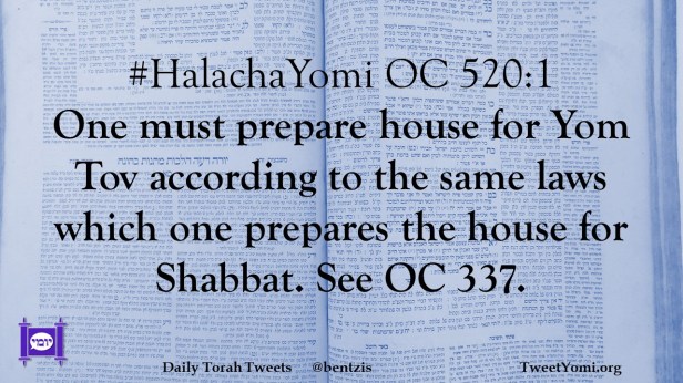 #HalachaYomi OC 520:1 One must prepare house for Yom Tov according to the same laws which one prepares the house for Shabbat. See OC 337.