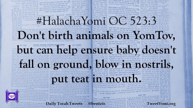 #HalachaYomi OC 523:3 Don’t birth animals on YomTov, but can help ensure baby doesn’t fall on ground, blow in nostrils, put teat in mouth.
